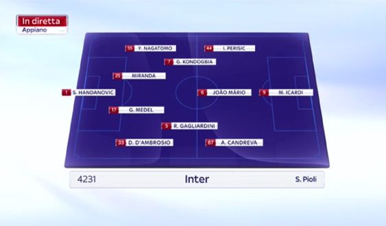 L'Inter si è allenata per la prima volta sulla tattica oggi, dopo le lezioni alla lavagna con i vari video. Troppi i gol incassati nelle ultime giornate e allora si passa alle giuste contromisure "un po' per fermare l'emorragia dei gol e un po' perché il Napoli è una delle squadre più prolifiche in attacco". Pioli giocherebbe dunque con i due esterni, Antonio Candreva e Ivan Perisic, più bassi, anche se il croato non si è allenato oggi per un affaticamento muscolare, ma è solo carico e domani tornerà con il gruppo. Ci sarà come sempre uno tra Ever Banega e Joao Mario dietro a Mauro Icardi. In difesa si gioca una maglia da titolare Jeison Murillo con Gary Medel per chi dovrà giocare al fianco di Joao Miranda e in mezzo al campo potrebbe esserci anche Brozovic.