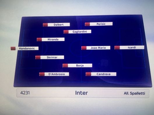 Handanovic; D'Ambrosio, Miranda, Skriniar, Dalbert; Gagliardini, Borja Valero; Candreva, Joao Mario, Perisic; Icardi.