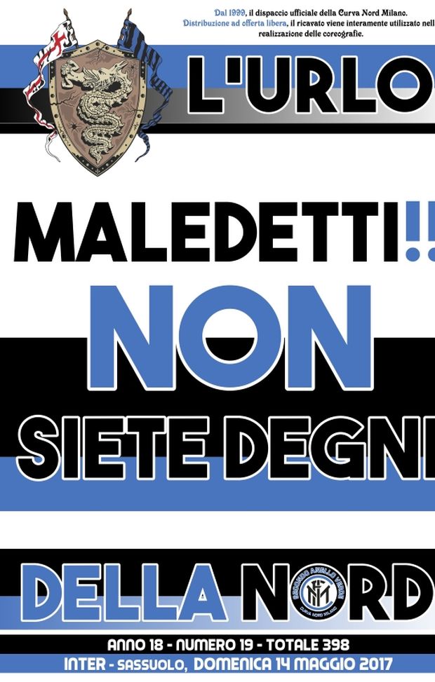 Domani durante Inter-Sassuolo comincerà la contestazione di San Siro nei confronti dei nerazzurri, che hanno collezionato 2 punti nelle ultime 7 partite. Sul proprio sito la Curva Nord ha pubblicato la copertina della fanzine che verrà distribuita domani al Meazza, che mostra una scritta molto dura nei confronti dei giocatori: "L'urlo della Nord: maledetti! Non siete degni". Un chiaro messaggio di una protesta che avrà luogo durante il match di domani.