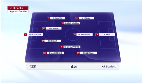 A meno di 24 ore dalla partita contro il Sassuolo, inizia a delinearsi l'undici che Spalletti manderà in campo contro la squadra di Iachini. I nerazzurri dovranno fare a meno di Vecino squalificato, torna Gagliardini dal primo minuto nei due davanti la difesa insieme a Borja Valero. Più avanti ci sarà Brozovic con Joao Mario che andrà in panchina. In avanti confermato il trio Perisic, Candreva e Icardi. In difesa potrebbe esserci una grossa sorpresa, ovvero il ritorno di Dalbert dal primo minuto. Il giocatore è stato provato ripetutamente da Spalletti questa settimana, si gioca una maglia con Santon e Nagatomo.