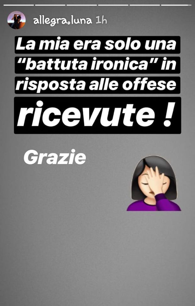 "La mia era solo una risposta ironica in risposta alle offese ricevute", ha scritto. Allegra quindi ha replicato così per replicare a chi evidentemente in queste ore sta offendendo il suo fidanzato e lei. Il giocatore poteva finire al Monaco nell'ambito di uno scambio con Keita, suo ex compagno alla Lazio tra l'altro, ma ha preso tempo perché non è convinto di un trasferimento soprattutto in questo momento in cui l'Inter si sta rinforzando, vorrebbe giocarsi le sue chance. Non sappiamo a quali insulti si riferisca la ragazza dell'interista, ma la domanda è: che senso ha?