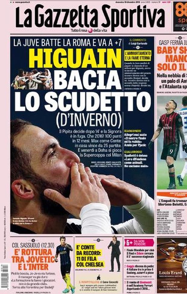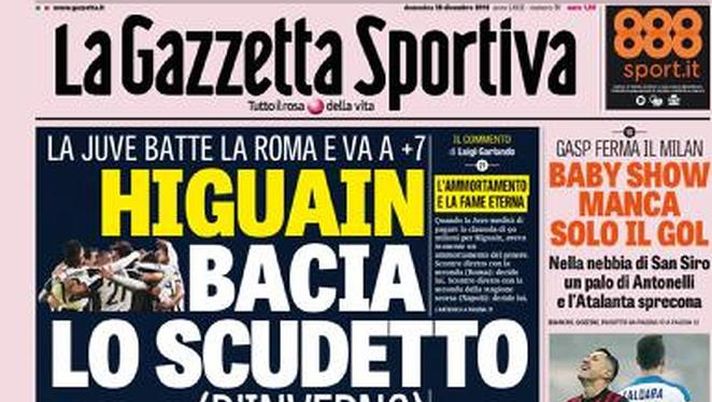 La prima pagina della Gazzetta del 18 dicembre 2016