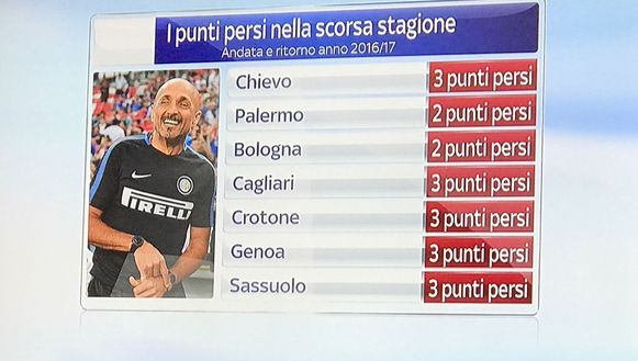 "L’Inter contro le medio-piccole nella scorsa stagione ha perso troppi punti, 19 per l’esattezza", ha proseguito il giornalista.