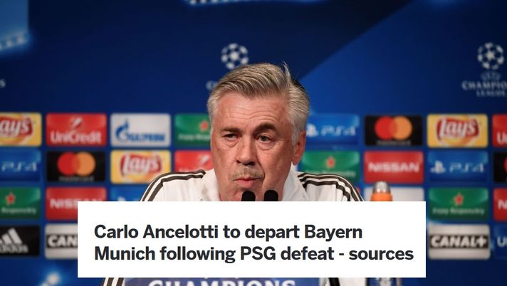 Carlo Ancelotti sarà esonerato dal Bayern Monaco oggi pomeriggio in conferenza stampa. E' quanto hanno riferito fonti a ESPN. Il tecnico italiano era già stato segnalato in bilico dalla Bild, che aveva parlato di una riunione d'emergenza convocata proprio per oggi. Secondo ESPN, quindi, sarebbe stata fatale la sconfitta netta, non solo nel punteggio (3-0), sul campo del Psg. Il Bayern sembra una polveriera, con uno dei veterani come Arjen Robben che si è rifiutato di schierarsi apertamente con il tecnico ieri dopo la partita.