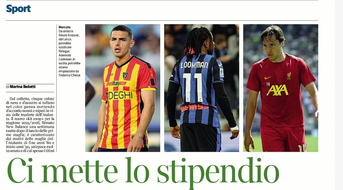 Coetaneo di Lookman, per Chiesa l’Atalanta rappresenta l’ultima chiamata: nei giorni scorsi l’ex bianconero non è stato convocato per la tournée asiatica, in cui la squadra di Slot sfiderà anche il Milan. Krstovic, attaccante classe 2000 del Lecce, resta invece il nome principale per il dopo Retegui, ma ogni giorno la dirigenza nerazzurra è al lavoro per aprire sondaggi: da Brian Brobbey, punta 2002 dell’Ajax, dal valore di 20 milioni, a Tolu Arokodare, centravanti nigeriano di 197 centimetri che gioca nel Genk dove, dopo 40 gol in 108 presenze, vale 25 milioni.