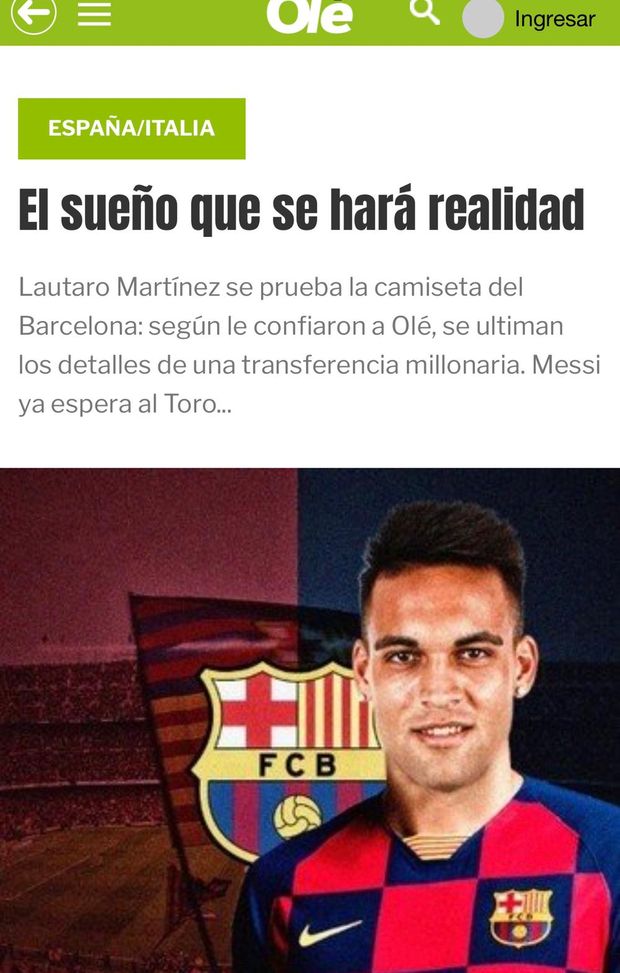 Olè: “Lautaro sarà del Barcellona. Affare più caro di sempre per un argentino, i dettagli”