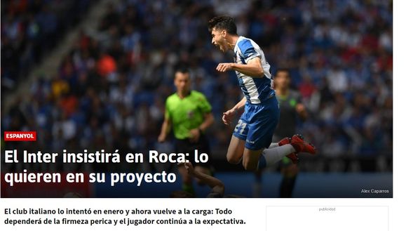 L'Inter non è l'unico club che è stato interessato al centrocampista classe '96, ma è quello che fino ad ora ha mostrato maggiore interesse. "La clausola rescissoria è di 40 milioni, un importo che non è esorbitante per un club dalle capacità economiche come Inter, anche se i nerazzurri cercheranno di imbastire una trattativa con l'Espanyol", scrive AS. Il trasferimento di Roca dipenderà dalla volontà del club che non ha bisogno di vendere e che ha altri giocatori sul piede di partenza. Persone vicine al giocatore, credono che questo non è il momento migliore per lasciare l'Espanyol, anche se adesso tutto è possibile.