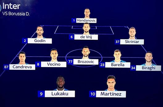 Manca pochissimo alla decisiva sfida di Dortmund per l'Inter. Ci si gioca una buona fetta di qualificazione agli ottavi di finale di Champions League nel gruppo F, quello che comprende anche Barcellona e Slavia Praga. Antonio Conte dovrà far fronte a scelte praticamente obbligate, sia a centrocampo, sia in attacco. E, se in avanti con ogni probabilità agiranno Lukaku e Lautaro Martinez, l'allenatore nerazzurro ha sciolto le ultime riserve anche in mezzo al campo al fianco di Brozovic e Barella. Sensi, non ancora al meglio, si accomoderà infatti inizialmente in panchina, lasciando spazio a Matias Vecino. A sinistra, data l'indisponibilità di Asamoah, giocherà Biraghi. Ecco la probabile formazione dell'Inter, riportata da Sky Sport: