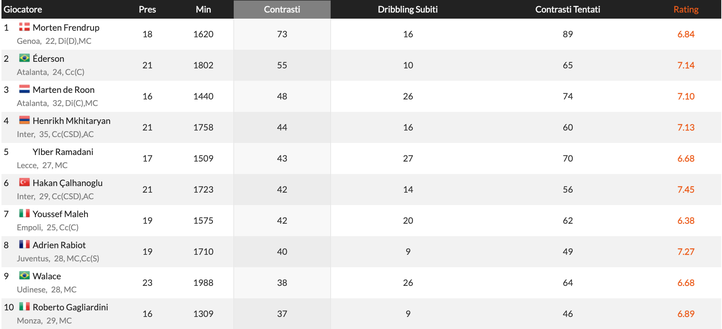 Non è un caso isolato, visto che da quando gioca da regista Calhanoglu ha numeri pazzeschi. La crescita nel nuovo ruolo è certificata dal numero in aumento di contrasti a partita e dal numero totale dei contrasti effettuati in Serie A.