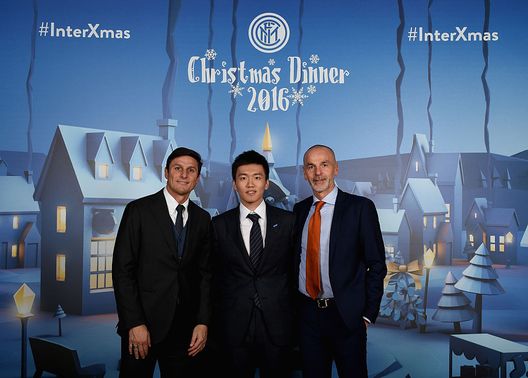 Javier Zanetti, in compagnia di Steven Zhang e Stefano Pioli