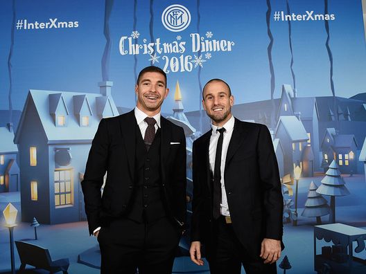 Palacio e Carrizo rappresentano i tanti argentini dell'Inter: eccoli in posa per i fotografi.