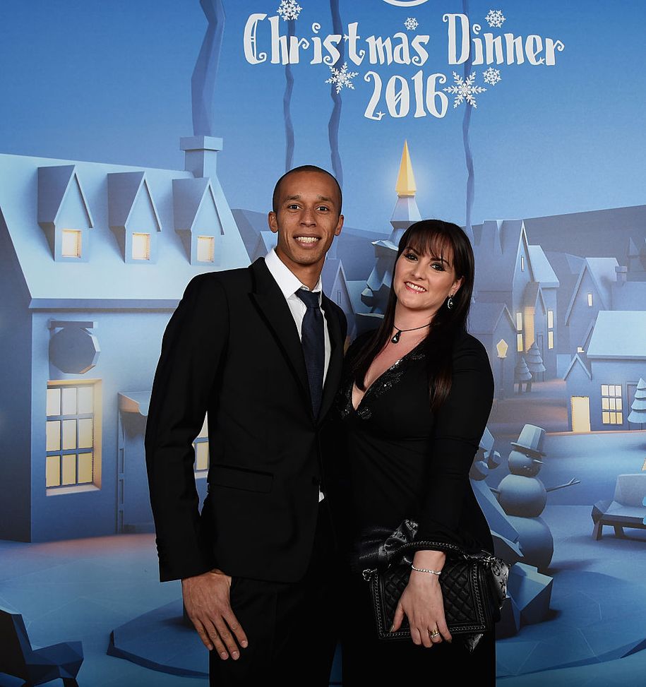Il difensore brasiliano Miranda in posa con sua moglie Jacqueline.