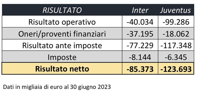 Conti quindi in squilibrio per entrambi dal punto di vista di conto economico. Inoltre, per Inter e Juventus, invece, oltre allo squilibrio tra ricavi e costi pesano anche gli oneri finanziari, che sono stati pari a 37 milioni netti per i nerazzurri e 18 milioni per i bianconeri nel corso del 2022/23: oneri che nel 2023/24 diminuiranno per la Juventus, visto che ci sarà il rimborso del bond da 175 milioni.