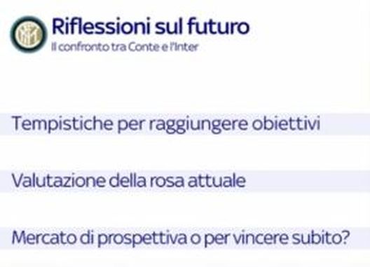 Nell'analisi da fare tra dirigenti e tecnico ci sarà quindi da capire anche quali sono le tempistiche per tornare a vincere. Il come continuare insieme - ha spiegato Luca Marchetti - determinerà il se continuare insieme. Il club nerazzurro in sostanza è contento di aver consolidato il quarto posto e di averlo raggiunto in anticipo ma ci si aspettava di più, ha sottolineato anche Matteo Barzaghi. L'intento della società è quello di continuare con l'allenatore attuale e insieme dovranno condividere le linee guida. Bisognerà però vedere se anche Conte sarà della stessa idea al termine dell'anno quando sarà fatta un'analisi attenta.