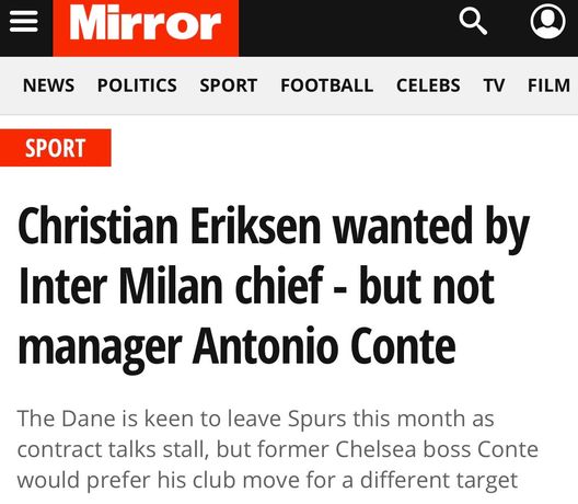 Mirror – Inter, Marotta spinge per arrivare subito a Eriksen, ma Conte frena: ecco perchè