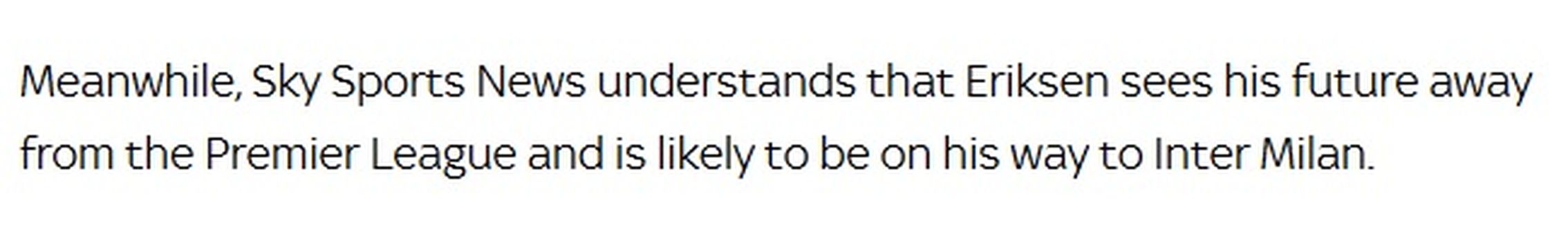 Sky Sports UK – Eriksen vuole lasciare la Premier, lo Utd si tira fuori. “Inter, conferme su…”
