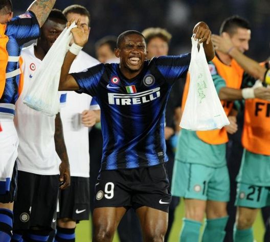 SAMUEL ETO'O E I SACCHETTI DI PLASTICA CONTRO IL MAZEMBE IN FINALE DI COPPA DEL MONDO 2010