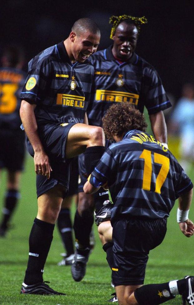 Checco Moriero, grande protagonista dell'Inter di Simoni, si inventò questa esultanza per celebrare le perle di Ronaldo: si chinava per lustrargli lo scarpino. Questa esultanza fu poi replicata anche con altri compagni di quell'Inter