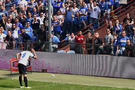 E' l'esultanza tipica di Mauro Icardi, che porta le braccia alle orecchie per sentire l'urlo del suo stadio. E in alcuni casi, per invitare in segno di sfida i tifosi avversari a fischiare