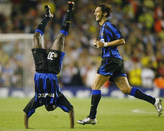 L'esultanza tipica di Oba Oba Martins, che regalava numeri da circo ai tifosi dell'Inter, facendo infuriare Hector Cuper, preoccupato di possibili infortuni alla schiena durante le esultanze