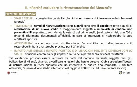 Inter e Milan hanno spiegato in un documento il perché della loro opposizione alla ristrutturazione del Meazza