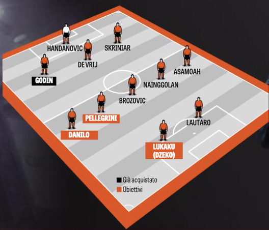Diverso il discorso offensivo se arriverà la svolta «contiana». Ipotizzando un probabile ricorso al 3-5-2, Lautaro potrebbe essere utilizzato come seconda punta (con Politano come alternativa) e l’ex c.t. amerebbe portare in Italia Romelu Lukaku, centravanti potente del Manchester United che però costa caro per cartellino e ingaggio. Dzeko è l’alternativa più economica. Diminuirebbero le probabilità di conferma per Keita e per Perisic servirebbe un adattamento a un nuovo ruolo. Complesso ipotizzare un impiego «a tutta fascia» per tutta la stagione. Danilo e Asamoah potrebbero essere comunque titolari possibili, ma servirebbero alternative sulle fasce, dove il tecnico chiede molto e vuole efficacia anche in attacco (più Candreva che D’Ambrosio per fare un esempio). Il ricorso costante (o quasi) alla difesa a tre renderebbe necessario avere più sostituti per la GDS, erede credibile della BBC. Ranocchia scalerebbe a «quinto», sul mercato si cercherà un centrale mancino (i tre titolari sono tutti destri) e la soluzione potrebbe essere già presente in casa: Alessandro Bastoni, di rientro dal prestito a Parma. Siamo ai progetti, ma presto si passa ai lavori.