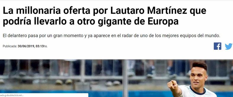 "Il Barcellona è pronto a pagare la clausola da 112 milioni di euro all'Inter per portare in Spagna Lautaro Martinez". La voce si sta spargendo in queste ore in Argentina, rilanciata da "Radio La Red" e ripresa immediatamente da tutti i blog del Racing Avellaneda, che ancora seguono con grande affetto El Toro.