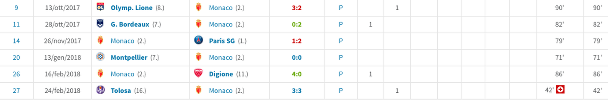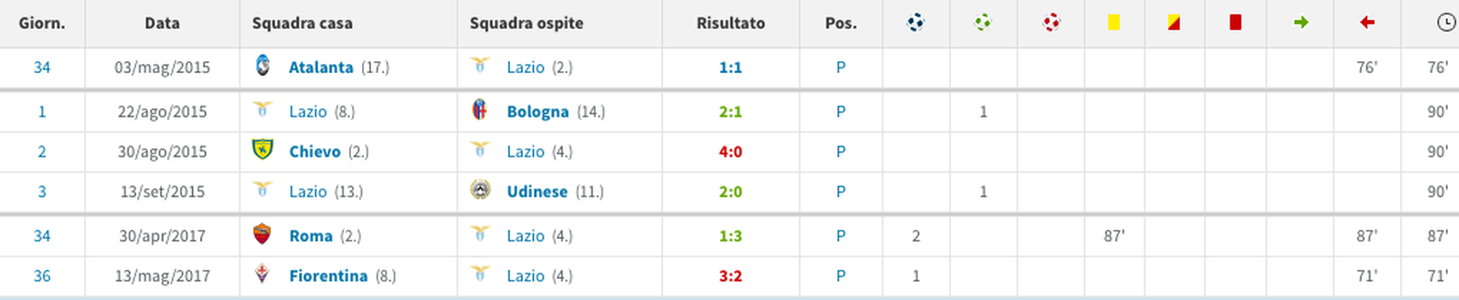 16 partite (8 con la Lazio, 7 col Monaco, 1 con l'Inter). 1257' giocati complessivamente