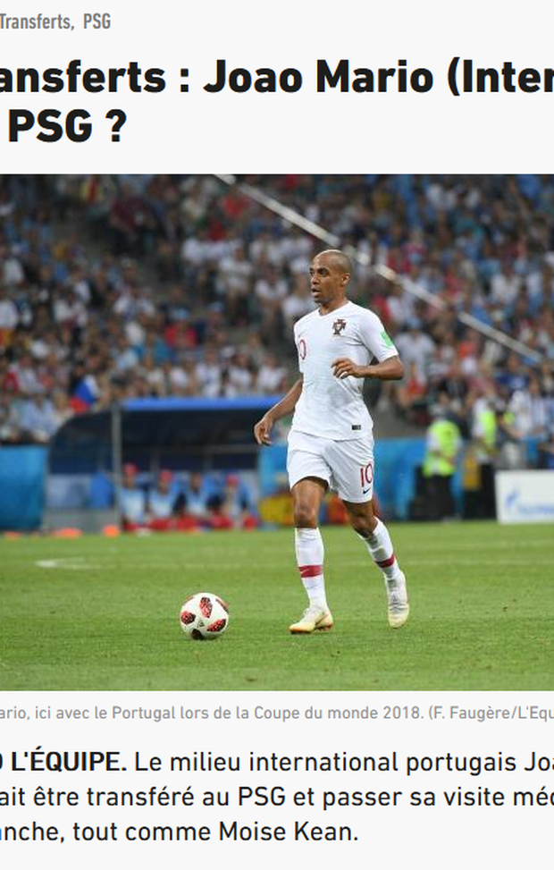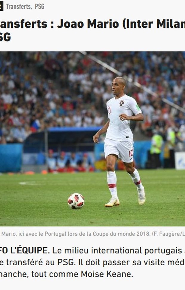 Secondo il quotidiano, addirittura il portoghese dovrebbe sbarcare a Parigi già nel pomeriggio per sottoporsi alle visite mediche. Joao Mario dovrebbe sostenere le visite insieme a Moise Kean, preso anch'egli in prestito dall'Everton.