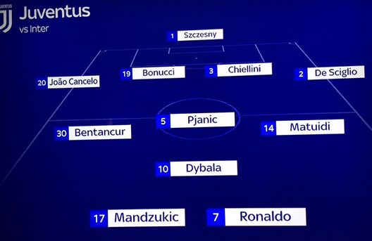 Per quanto riguarda i bianconeri, il tecnico juventino dovrebbe puntare su un 4-3-1-2 con Dybala ad agire alle spalle di Mandzukic e Cristiano Ronaldo. Probabile che Allegri confermi a centrocampo Bentancur, reduce da un ottimo periodo di forma. Al suo fianco il rientrante Pjanic e Matuidi. In difesa, l'ex Cancelo giocherà sulla destra, mentre sull'altra fascia probabile che agisca De Sciglio.