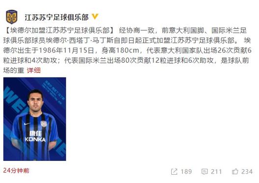ORE 10.35 - Dalla Cina intanto arriva l'ufficialità del passaggio di Eder dall'Inter al Jiangsu Suning