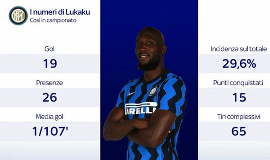 La stagione di Romelu Lukaku è a dir poco esaltante. Il centravanti dell'Inter ha stupito tutti per la continuità alla sua prima stagione in Italia e quest'anno si sta ripetendo confermando di essere un elemento fondamentale per la squadra di Conte. 26 presenze e 19 gol siglati per il belga, con una media di una rete ogni 107'. Grazie alle sue reti l'Inter ha conquistato 15 punti, le sue marcatore incidono sul totale delle reti per il 29,6%. Numeri importanti che dimostrano il valore di Lukaku e il motivo per cui Conte ne ha fatto una colonna dell'Inter.