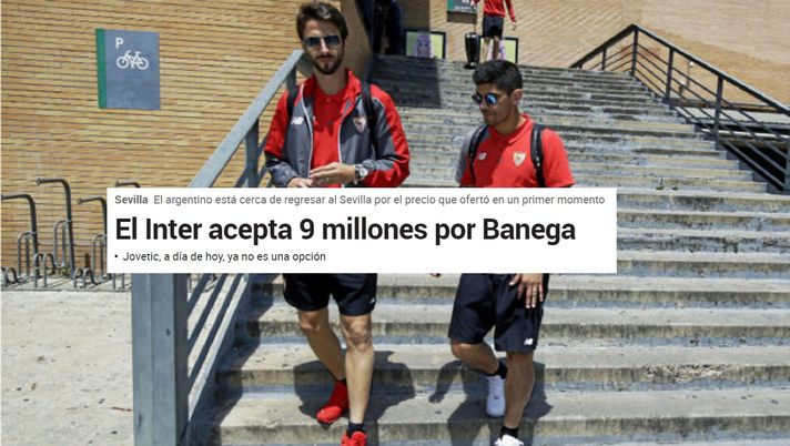 Il ritorno di Ever Banega al Siviglia è ormai cosa fatta. Ad annunciare il ritorno in Spagna dell'argentino è il portale spagnolo Marca secondo cui l'Inter ha accettato l'offerta di 9 milioni fatta dal Siviglia per il trequartista. Il club spagnolo, dopo che l'Inter aveva ingaggiato Banega a parametro zero nella passata stagione, è a conoscenza dei costi del giocatore e ha potuto così fare i conti su quanto può sbilanciarsi annualmente per l'ingaggio giocatore. Ulteriore passo avanti nella trattativa per il ritorno di Banega in al Siviglia, trattativa per la quale sembra ormai mancare pochissimo.
