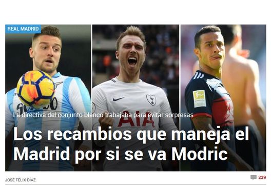 "Per evitare sorprese - continua il quotidiano - il Real Madrid ha tre nomi di possibili sostituti su cui sta lavorando ormai da settimane. Era previsto l'addio di Cristiano Ronaldo, non quelli di Modric e Kovacic, che stravolgono le convinzioni della dirigenza, che ora deve mettere in atto alcune delle idee su cui già si stava ragionando".
