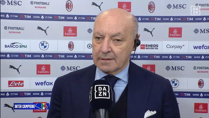 «Ancora spazio per l'emozione? Intanto vorrei partire dalle dediche a partire da Zhang che ha sofferto a distanza e non è con noi. Ai nostri tifosi che sono stati impeccabili. Poi i meriti: Inzaghi ha dimostrato di essere bravo e vincente: artefice e leader di questo gruppo. I miei collaboratori, da Ausilio a Zanetti, donne e uomini che hanno supportato la squadra, curato i particolari, hanno fatto di tutto perché la squadra raggiungesse lo storico risultato della seconda stella, qualcosa di straordinario». Così Beppe Marotta, a DAZN, ha raccontato la vittoria dello scudetto dell'Inter dopo il derby.
