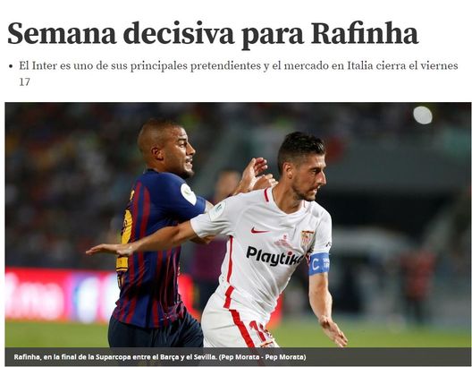 A maggio l'Inter non aveva abbastanza risorse per riscattarlo alla cifra imposta dal Barcellona, ma ora, secondo il quotidiano spagnolo, potrebbe utilizzare i soldi di Modric - nel caso in cui l'affare non si concretizzi - proprio per Rafinha. Questa è dunque la settimana decisiva: se l'Inter vuole davvero Rafinha, deve fare in fretta.