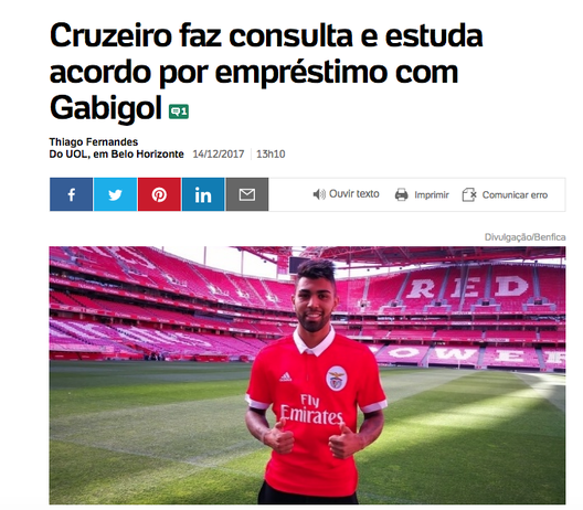 C'è tanta incertezza sul futuro di Gabigol, ma una cosa è certa: a gennaio dirà addio al Benfica. Le pretendenti per il brasiliano non mancano, in Europa ci sono gli occhi del Betis sul giocatore che però preferirebbe tornare in Brasile. Il Santos e il San Paolo lo accoglierebbero a braccia aperte anche se il nodo relativo all'ingaggio rappresenta un ostacolo di non poco conto. Ma c'è un'altra squadra brasiliana disposta ad accogliere il giocatore: il Cruzeiro. Secondo quanto raccolto da UOL Esporte, il vicepresidente del club, Itair Machado, ha già contattato l'entourage di Gabigol per capire qual è l'attuale situazione dell'attaccante. L'intenzione del Cruzeiro è quella di pagare parte dello stipendio del giocatore, 89 mila euro al mese, poco più di un milione all'anno, il resto del salario lo pagherebbe l'Inter.