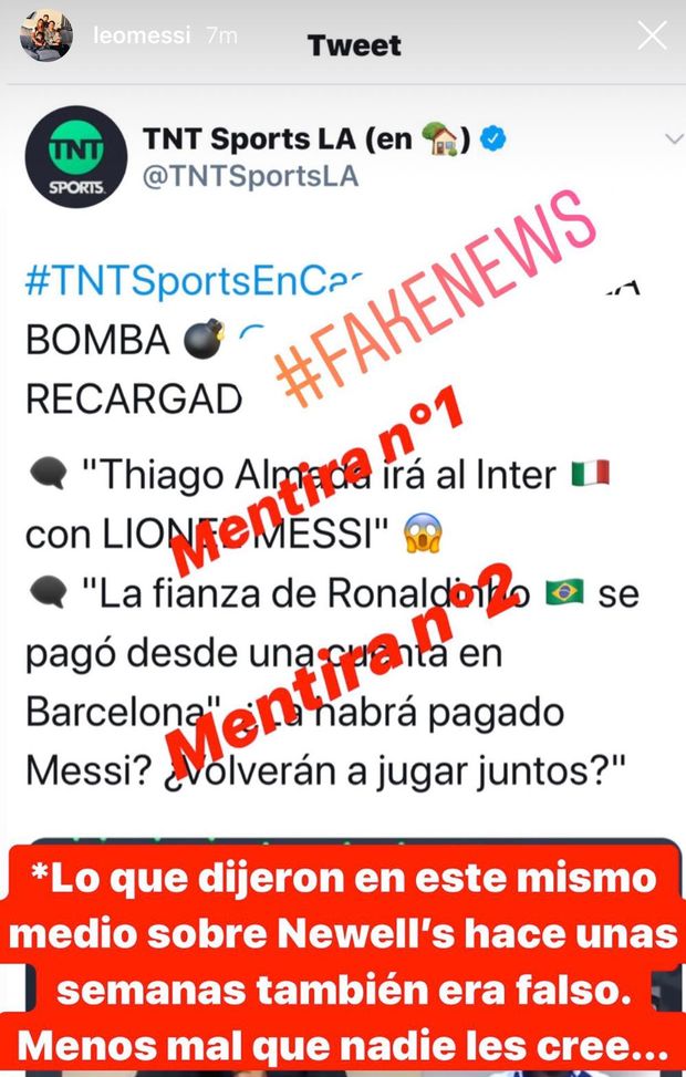 "E quello che ha detto questa stessa emittente qualche settimana fa sul Newell's è ugualmente falso. Menomale che nessuno crede loro", ha scritto un Messi evidentemente infastidito.