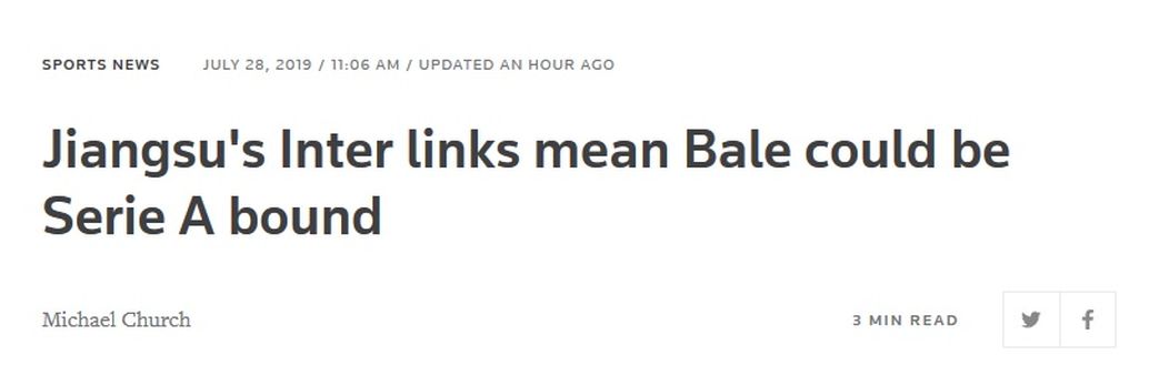 Il mercato cinese chiude il 31 luglio e il Jiangsu ha in rosa già i giocatori stranieri che coprono il limite consentito, tanto più che nei giorni scorsi Joao Miranda è stato ufficializzato come nuovo acquisto. Per questo, sulla scia di quanto accaduto anni fa con Trent Sainsbury, il Jiangsu Suning potrebbe prestare Bale all'Inter per questa stagione. "Vedere il gallese correre a San Siro invece che al Nanchino Olympic Sports Centre è una realtà molto concreta", segnala la Reuters.