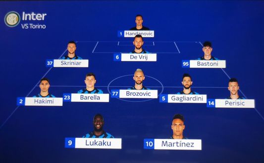 Davanti ad Handanovic, nessun dubbio con il trio formato da Skriniar, De Vrij e Bastoni confermato. Sulle fasce agiranno Hakimi e Perisic, preferito a Young, mentre in avanti Lautaro vince il ballottaggio con Sanchez per affiancare Lukaku. Una maglia ancora da assegnare a centrocampo: Eriksen e Gagliardini si giocano un posto per completare la linea mediana al fianco di Barella e Brozovic.