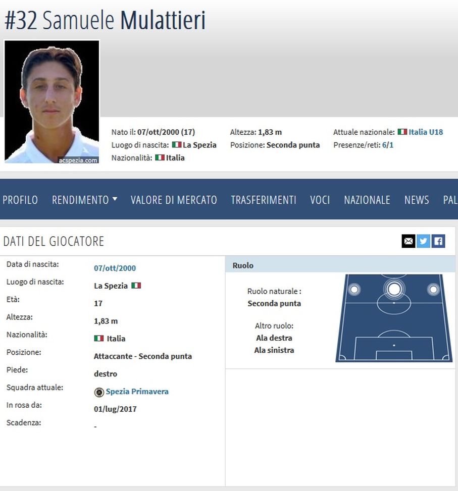 "Lo Spezia Calcio rende noto di aver ceduto a titolo definitivo le prestazioni sportive del giovane calciatore Samuele Mulattieri all'FC Internazionale Milano. A Mulattieri i migliori auguri per un futuro ricco di soddisfazioni sportive e non". Questo l'annuncio ufficiale dello Spezia. L'Inter ha bruciato la Juventus e si è assicurata uno dei talenti più in vista del calcio italiano, classe 2000.