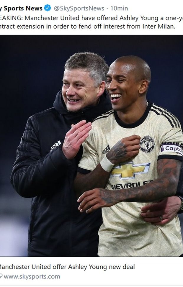 L'Inter ha messo le mani su Ashley Young. L'esterno è in scadenza di contratto col Manchester United e, secondo quanto riportato dalla BBC, il club nerazzurro avrebbe già trovato l'accordo per la prossima stagione e vorrebbe anticipare il suo arrivo già a gennaio.