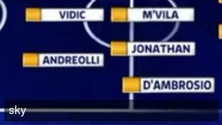 Il francese giocherà in mezzo al campo, con Jonathan e Krhin come scudieri. In difesa, turno di riposo per Ranocchia con spazio all'ex di turno Andreolli. Sulle fasce ci saranno D'Ambrosio e l'altro ex, Dodò.