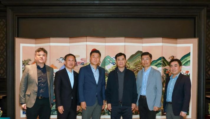 Al termine del summit foto di gruppo nella sede di Suning e annuncio sul rafforzamento della partnership tra i due colossi