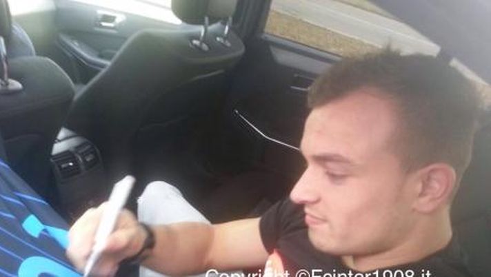 Sono i suoi giorni, i giorni di Xherdan Shaqiri, il nuovo entusiasmante acquisto dell'Inter che ha riacceso di gioia tutto il popolo nerazzurro. I tifosi aspettavano da tempo acquisti come il suo e come quello di Lukas Podolski, tanto da celebrarli a loro modo in tutti questi giorni. Non solo in aeroporto, ma anche da fuori da Appiano la carica e l'entusiasmo spopolano. E loro, naturalmente, dimostrano di apprezzare tutto l'amore che i tifosi gli stanno dedicando, fermandosi tra di loro per foto e autografi. Il primo ad uscire è proprio Xherdan, immortalato da FCINTER1908.it ad autografare la sua nuova maglia numero 91.