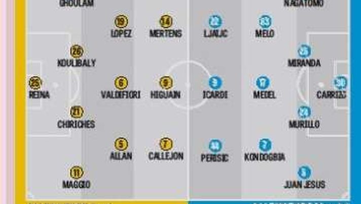 Questa sera, calcio d’inizio alle ore 20.45, va in scena allo Stadio San Paolo, Napoli-Inter, valevole per i quarti di finale di coppa Italia. Per l’occasione, secondo la Gazzetta dello Sport, Mancini starebbe pensando di schierare un 4-3-3 a specchio con quello del Napoli. Con più titolari che no, anche se Palacio scalpita come Biabiany (che però nel minutaggio a Bergamo non ha cambiato passo all’Inter). In porta? Solitamente il portiere prescelto per le Coppe (Europa League e Coppa Italia finora) è sempre stato Carrizo: Mancini è convinto di confermarlo ma occhio ad Handanovic visto lo stato di forma strepitoso. Poi: considerando il centrocampo abbastanza imballato nelle ultime giornate, è più che possibile il ritorno in campo di Felipe Melo; Kondogbia, che non è sceso in campo a Bergamo, sarebbe l’altro interno. Medel? Più nel suo posto davanti alla difesa che al centro della difesa per far rifiatare Murillo. Perisic e Ljajic in vantaggio sugli esterni, Jovetic verso la panca.