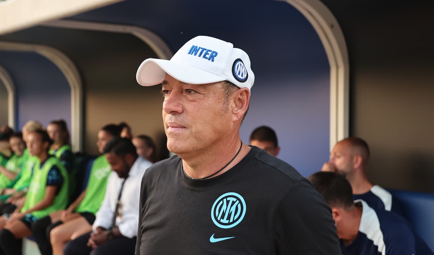 MILAN, ITALY - AUGUST 27: Coach Gianpiero Piovani of FC Internazionale Women looks on during the UEFA Womens Champions League Second qualifying round match between FC Internazionale v SK Brann at Konami at Youth Development Center on August 27, 2025 in Milan, Italy. (Photo by Mattia Ozbot - Inter/Inter via Getty Images)