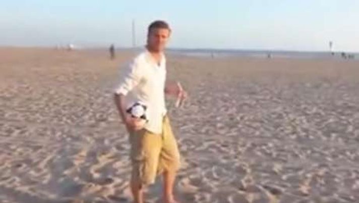 David Beckham si gode la sua vita negli States, su una spiaggia di Los Angeles l'ex calciatore inglese mostra le sue abilità, sfidato da un avventore per uno spot pubblcitario, calciando 3 volte verso alcuni bidoni della spazzatura in riva al mare. Come andrà a finire?
