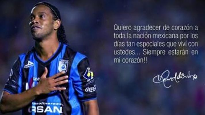 Ronaldinho lascia i nerazzurri messicani del Queretaro per trasferirsi in Turchia. Il brasiliano ha trascorso momenti bellissimi in Messico e ha voluto ringraziare i tifosi e tutto il Paese per averlo adottato postando un video sul suo canale YouTube nel quale fa rivivere tutti i momenti migliori della sua esperienza col Queretaro.