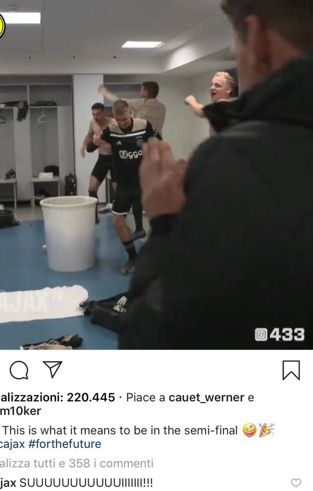 L'impresa dell'Ajax sta facendo parlare tutto il mondo dello sport. Il club olandese ha dato un'autentica lezione di calcio alla Juventus in campo. Sui social, però, l'Ajax è andato incontro ad uno scivolone che ha fatto infuriare i fan di Cristiano Ronaldo. Nel commentare il video che ritrae i giocatori che festeggiano negli spogliatoi, l'Ajax ha fatto il verso a CR7, commentando con la classica espressione del portoghese dopo i gol.